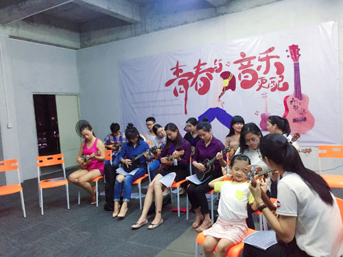瑜伽和尤克里里培训班均聘请专业老师授课。走进瑜伽课堂,可以清晰地体会到安静和清新。瑜伽班都是女学员,她们用肢体充分展现出了女性固有的柔美。学员们跟随老师闭目养神,静坐拉伸,放松身心,达到身体、心灵、精神的和谐统一。与瑜伽的静和柔相比,尤克里里课堂显得欢快和活跃。学员们在老师的指导下,拨动一根根琴弦,弹出一个个跳跃的音符,尽情享受在音乐的世界里,用音乐传递快乐。他们绽放着笑脸,为自己的点滴进步而欣喜。瑜伽和尤克里里恰好用一静一动,为凯豪达广场增添了丝丝温暖。“瑜伽”和“尤克里里”更是成为园区里大家茶余饭后的热点话题。