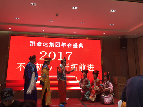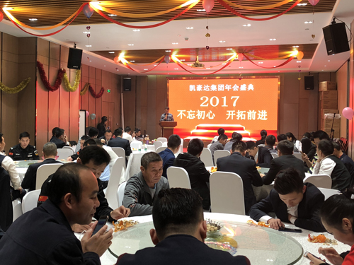 12月29日下午,凯豪达集团在凯豪达广场容锦酒店举办了“不忘初心、开拓前进”为主题的2017年会盛典,凯豪达集团董事长陈凯家、副总裁陈凯波及公司全体员工、部分员工家属及特邀嘉宾共同参加了此次年会盛典,共同度过了一个难忘而欢乐的夜晚。